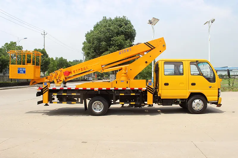 Der Isuzu 15-21 m Teleskopausleger-Arbeitshubwagen ist einfach zu bedienen, flexibel und effizient, berücksichtigt vollständig die Einsatzanforderungen verschiedener Einsatzszenarien und bietet dem Bediener ein sicheres und komfortables Bedienerlebnis. Die Ausrüstung verfügt über eine hervorragende Stützstabilität, die gleichzeitig oder separat betrieben werden kann, sich flexibel an unterschiedliche Standortbedingungen anpasst und auch unter schwierigen Straßenbedingungen stabil stützen kann, um die Sicherheit von Einsätzen in großer Höhe zu gewährleisten; Der Schwenkmechanismus verfügt über ein verstellbares Design, das bequem einzustellen ist, und der Drehteller kann um 360° in beide Richtungen gedreht werden, mit einem großen Betriebsbereich und ohne tote Winkel, was die Betriebseffizienz erheblich verbessert. Darüber hinaus ist dieses Produkt mit einem elektrisch gesteuerten Hubarm ausgestattet, der arbeitssparend und bequem zu bedienen ist, gepaart mit zwei Sätzen oberer und unterer Bedienplattformen, sodass der Bediener flexibel je nach Betriebsbedarf wechseln kann, den Betriebsprozess weiter optimiert und sich für die Chargenbeschaffung für verschiedene Betriebsprojekte in großer Höhe eignet.