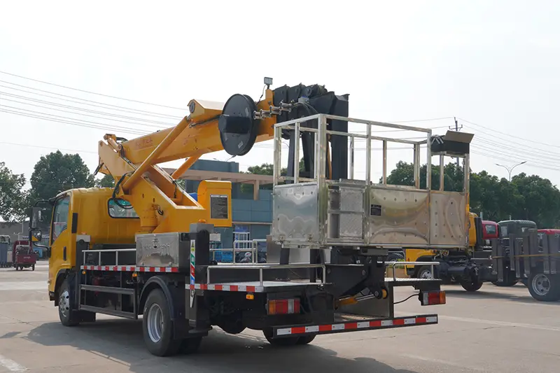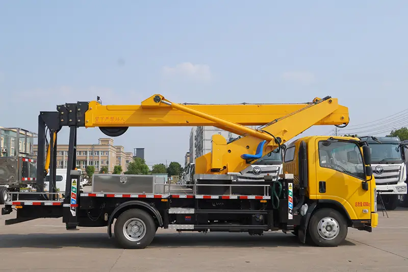 ISUZU ELF 100P 22m Hubarbeitsbühnen-LKW, ein leistungsstarker Hubarbeitsbühnen-Lkw des professionellen Spezialfahrzeugherstellers Hubei Runli Special Automobile Co., Ltd. in China, ist für den Großhandel, die Massenbeschaffung und den weltweiten Export zu wettbewerbsfähigen Fabrikpreisen erhältlich. Diese 22-m-Hubarbeitsbühne ist auf dem zuverlässigen Isuzu ELF 100P-Chassis aufgebaut und zeichnet sich durch leichtes Design, unbegrenzte 360°-Schwenkbarkeit, vollständige Sicherheitskonfigurationen und kraftstoffsparende Leistung aus, ideal für Straßeninstandhaltung, Ingenieurbau und Luftinstallation. Wir unterstützen individuelle Bestellungen, 12-monatige Qualitätsgarantie und technische Videoberatung aus der Ferne, akzeptieren nur FOB- und EXW-Handelsbedingungen und beliefern Kunden aus dem Ingenieur- und Bauwesen weltweit mit sicheren, stabilen Arbeitshubwagen.