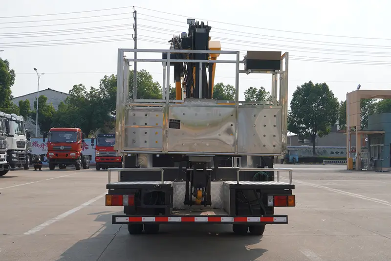 Dieser 22-m-Hubarbeitsbühnenwagen ist mit einem vollständigen Satz Sicherheitssysteme ausgestattet, um die Betriebssicherheit zu gewährleisten: obere und untere Fahrzeugverriegelungsvorrichtung, elektrische Nothydraulikpumpe, Zweiwege-Hydraulikverriegelung und Ausgleichsventil, um ein versehentliches Herunterfallen des Auslegers zu verhindern; Fahrzeug-Niveauanzeige zur Echtzeit-Neigungsüberwachung, um das Risiko eines Umkippens zu vermeiden; Nivelliersystem mit gleichvolumigem Zylinder zur automatischen Plattformnivellierung; Intelligentes Lastbegrenzungs- und Gefahrenalarmsystem sowie strenge werkseitige dynamische und statische Lasttests sorgen für absolute Sicherheit unter allen Arbeitsbedingungen.