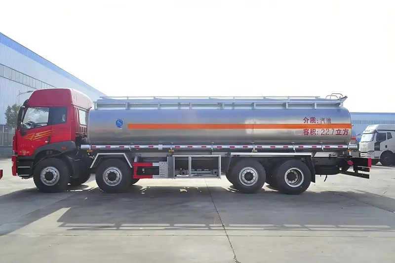Dieser Heizöltankwagen wurde speziell für den Transport gefährlicher Güter (FL-Fahrzeugtyp) entwickelt und verfügt über fortschrittliche Sicherheitssysteme, darunter die elektronische Bremssteuerung WABCO EBS3, Scheibenbremsen an der Vorderachse und Notfallschutzvorrichtungen für Reifenplatzer. Das Fahrzeug entspricht den nationalen Emissionsnormen GB17691-2018 VI und ist somit für internationale Märkte mit strengen Umweltvorschriften geeignet.