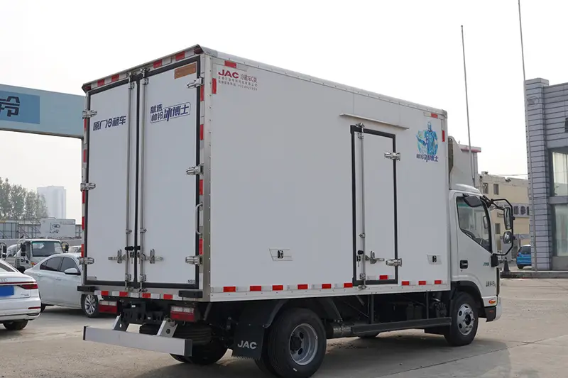 •Material: Der Aufbau des Fleischkühlwagens besteht aus einer „Sandwich“-Plattenstruktur mit Platten aus hochdichtem Polyurethanschaum (PU) oder Platten aus extrudiertem Polystyrol (XPS).