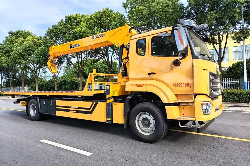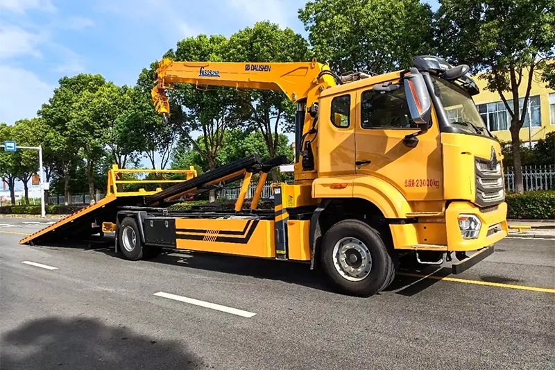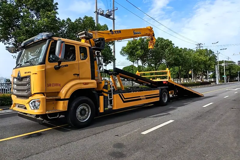 Dieser 18-Tonnen-Abschleppwagen ist auf einem National VI Howo 4*2-Chassis aufgebaut und verfügt über eine 10-Tonnen-Pritsche, einen 8-Tonnen-Teleskopschlepparm, einen 8-Tonnen-XCMG-Kran mit geradem Arm und beidseitigen Betrieb, ideal für Straßenrettung, den Transport von defekten Fahrzeugen und das Heben schwerer Lasten. Wir unterstützen kundenspezifische Konfigurationen, 12 Monate Qualitätsgarantie und technische Videoberatung aus der Ferne, akzeptieren nur FOB- und EXW-Handelsbedingungen und beliefern globale Rettungsteams und Logistikunternehmen mit langlebigen, hocheffizienten One Drag Two Wrecker Trucks.