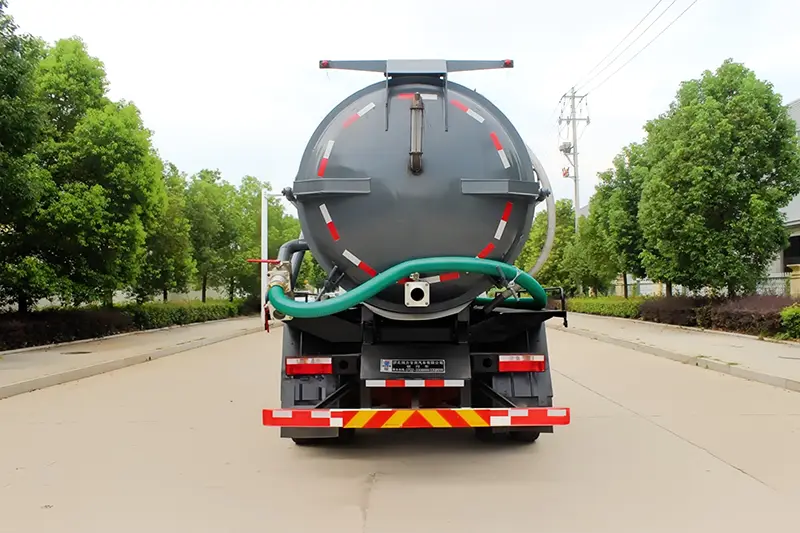 ③Darüber hinaus ist der Abwassersaugwagen standardmäßig mit einem hydraulischen Hebesystem, einem Abwasserzirkulationssystem und einem Mehrpunkt-Sicherheitsschutzsystem ausgestattet. Das hydraulische Hebesystem kann den Tank leicht kippen, um Materialien zu entladen, was praktisch und arbeitssparend ist; Das Abwasserzirkulationssystem kann eine Selbstreinigung des Tanks ermöglichen und so den Wartungsaufwand reduzieren. Das Sicherheitsschutzsystem umfasst einen Not-Aus-Knopf, ein Überdruckventil und andere Komponenten, die die Sicherheit von Bedienern und Geräten während des Betriebs gewährleisten.